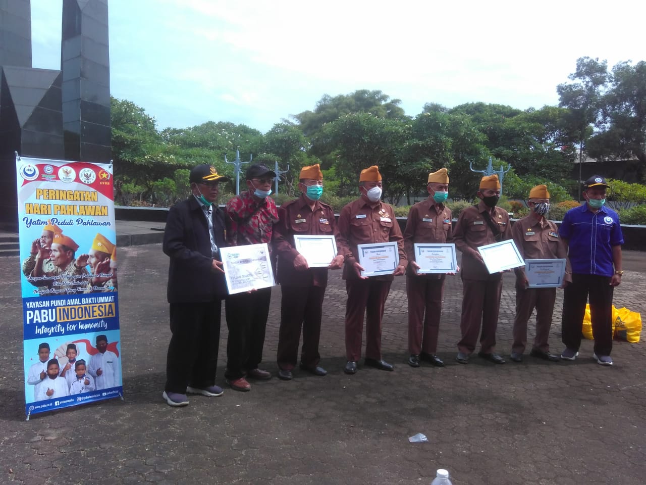 Bekasi 29/11/2020, Hari pahlawan menjadi sedikit berbeda di tahun ini, walaupun pandemi masih menemani hingga penghujung tahun, gelora memperingati gugurnya pahlawan pahlawan terdahulu menjadi doping utama bagi mereka, para anak anak yatim untuk datang ketempat pengenangan terakhir yaitu Taman Makam Pahlawan. Pagi itu, lokasi acara dipenuhi oleh berbagai generasi, mulai dari generasi muda yaitu para yatim, hingga generasi tua yaitu para saksi bisu kekejaman penjajah itu sendiri, tak lain dan tak bukan ialah para veteran yang hingga kini masih terus dapat menghirup segarnya udara kemerdekaan.
