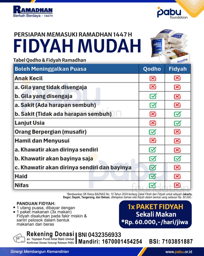 🌙 Mari tunaikan fidyah melalui PABU Foundation.